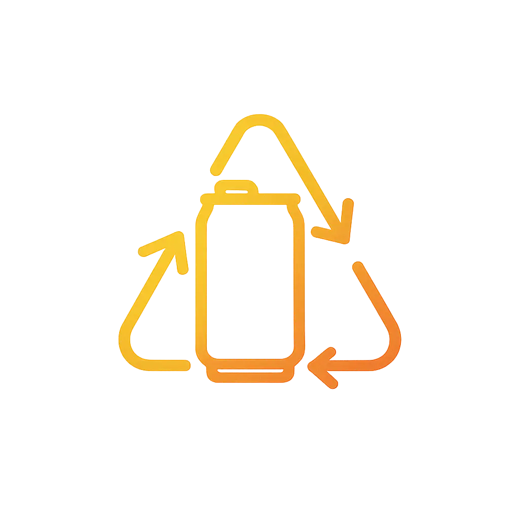 Recyclable cans, production chain optimized to reduce carbon footprint.
